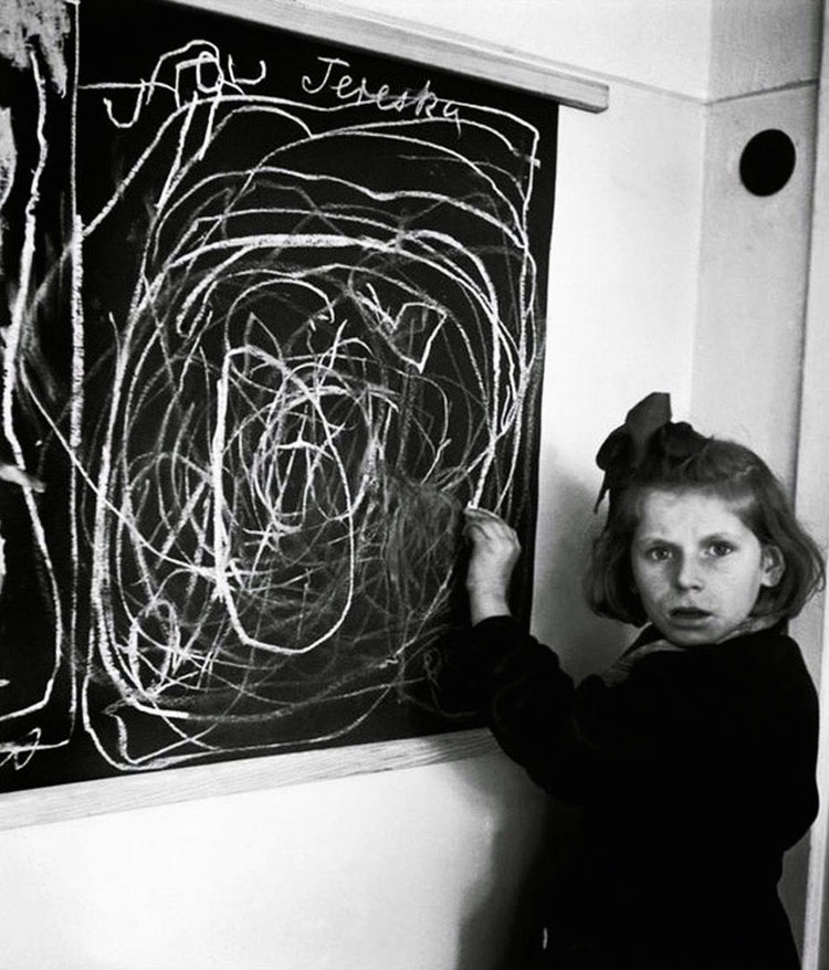 Teresa, una chica que creció en un campo de concentración, dibuja su «casa», Polonia, 1948