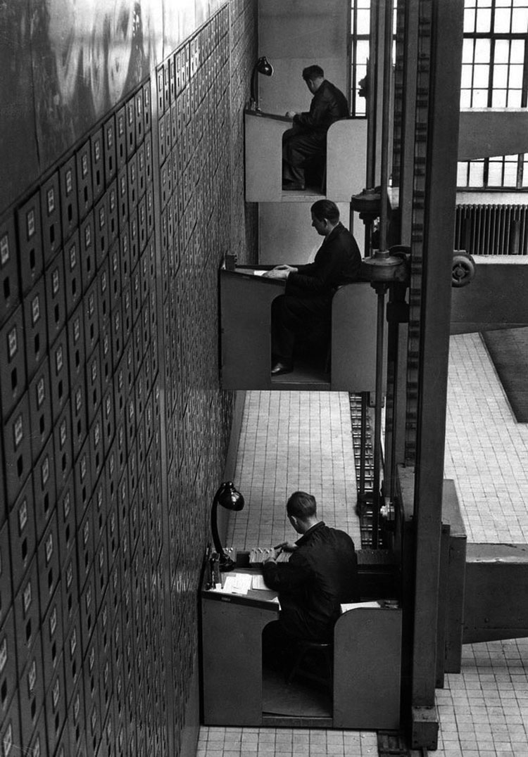 [sc:creditos url=»https://www.reddit.com/r/pics/comments/33lgbo/electric_elevator_desks_in_prague_1937/» enlace=»Reddit / KevlarYarmulke» ]