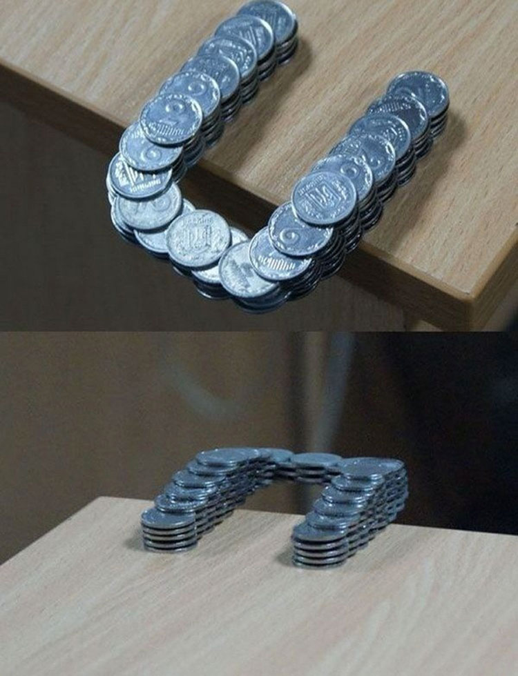 5. Estas monedas no están pegadas entre sí, están apiladas.