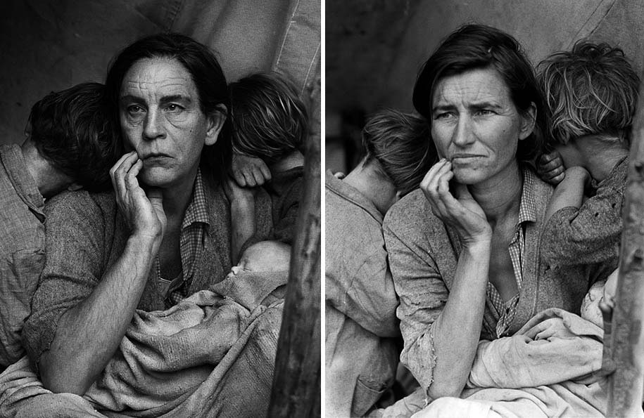 [sc:creditos-sin-url texto=»Sandro Miller, Dorothea Lange / Madre emigrante, Nipomo, California (1936), 2014″ ]