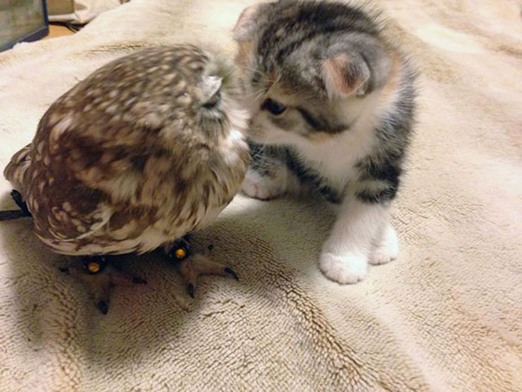 Fuku es un buho que conoció hace unos días a un nuevo amigo.