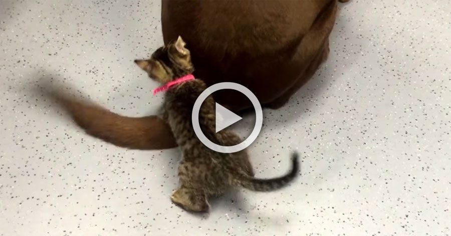 ¡Este gatito piensa que la cola de este perro es el mejor juguete del mundo!