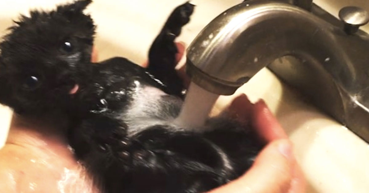 Se podría pensar que este gatito enloquecería en el agua, pero estaba en el cielo bajo el agua caliente del grifo. Inclinó la cabeza hacia atrás y simplemente disfrutaba de la sensación como lo haríamos cualquiera de nosotros…