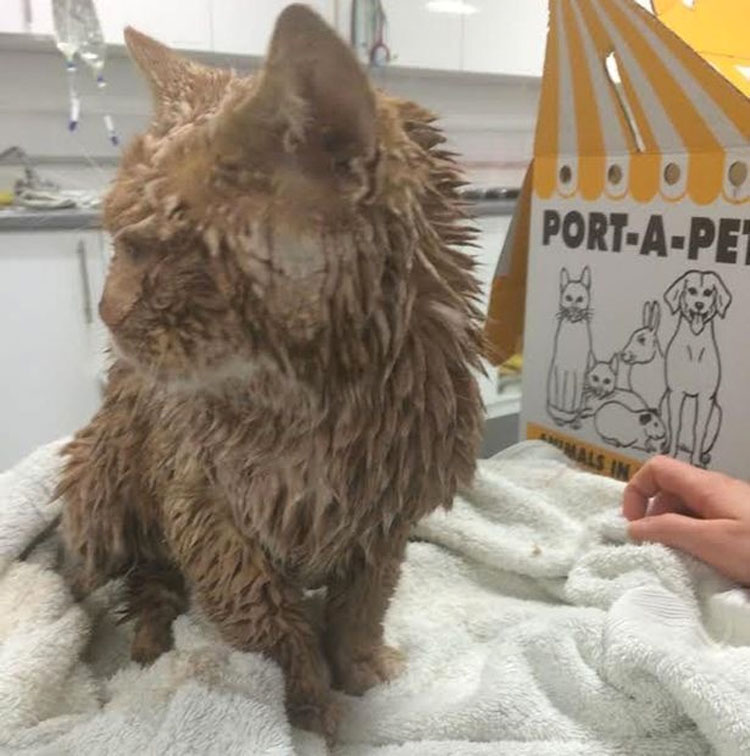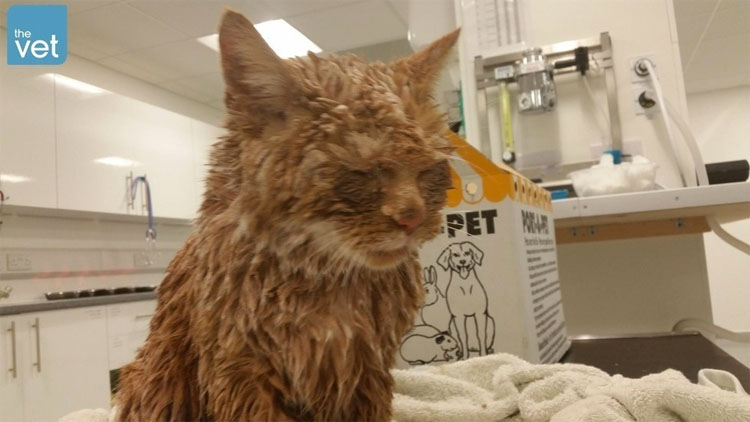 El gato, más tarde llamado Grant, fue admitido inmediatamente en la veterinaria The Vet Bristol.