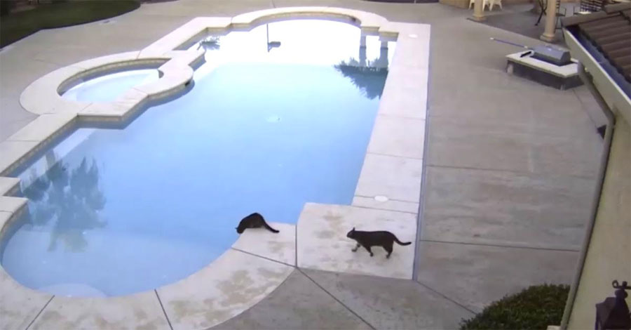 Parece ser que las cámaras de vigilancia pueden recoger mucho más que simplemente ladrones. Y si no que se lo digan al dueño de estos dos gatos