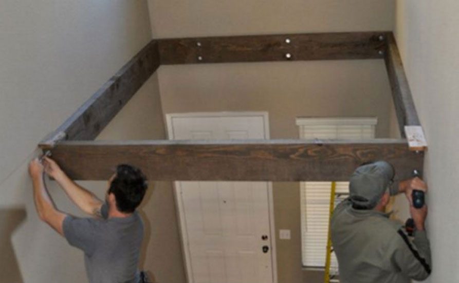 Así que se pusieron a trabajar y construyeron el marco para un loft que cuelga sobre la puerta principal.