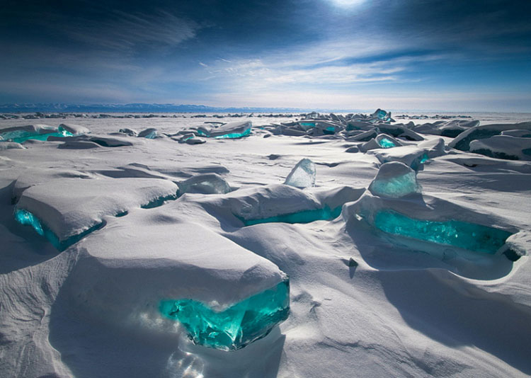 El fotógrafo ruso Alexey Trofimov ha realizado una serie de impresionantes fotos del hielo color turquesa que se encuentra en el lago Baikal en Rusia. Conocido por sus aguas cristalinas, el lago Baikal se encuentra congelado de enero a mayo. A pesar de las temperaturas bajo cero, la belleza del lago y su hielo que parecen gemas atrae a muchos turistas, incluso en los meses más fríos del invierno.