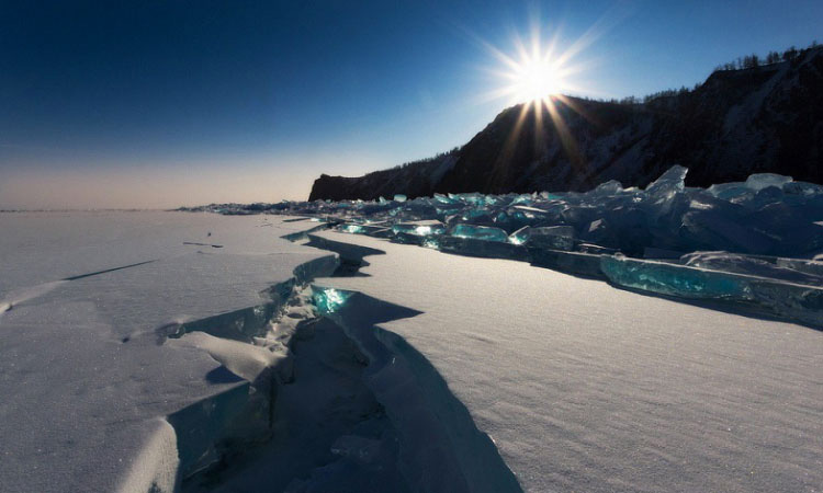 Las increíbles fotos del hielo turquesa que parecen gemas del lago Baikal