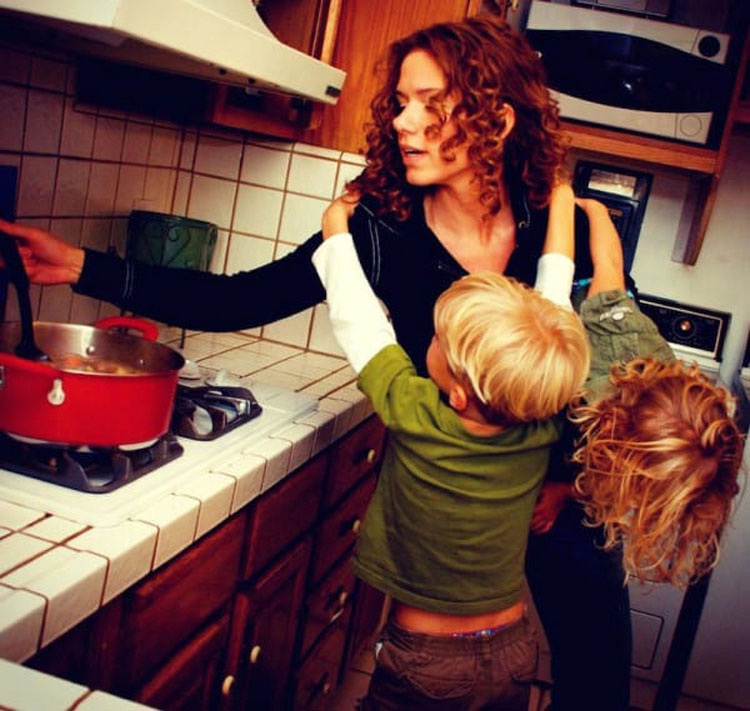 Unas pocas semanas después de conocer a los niños, tuve una noche particularmente dura. Estaba enferma, y mi hija de 3 años, se despertó en mitad de la noche vomitando por toda la alfombra, y, por supuesto, despertó a mi hijo de 5 años, que gritaba y lloraba por el agotamiento. Los tres estábamos hechos un desastre. Fue uno de esos momentos en que una madre llega a pensar que va a volverse loca. Tenía aspecto de loca, probablemente olía a loca, y en mi cabeza palpitaban todos los gritos. Estaba tratando de calmar a mis hijos y limpiar a mi hija y la alfombra, y pensé, ‘¿Participaría un hombre en todo esto?’ «