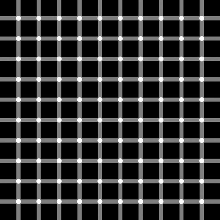 Hay manchas negras en las intersecciones de las líneas blancas – a excepción de la que usted está buscando en este momento. En realidad, no existen estos puntos.