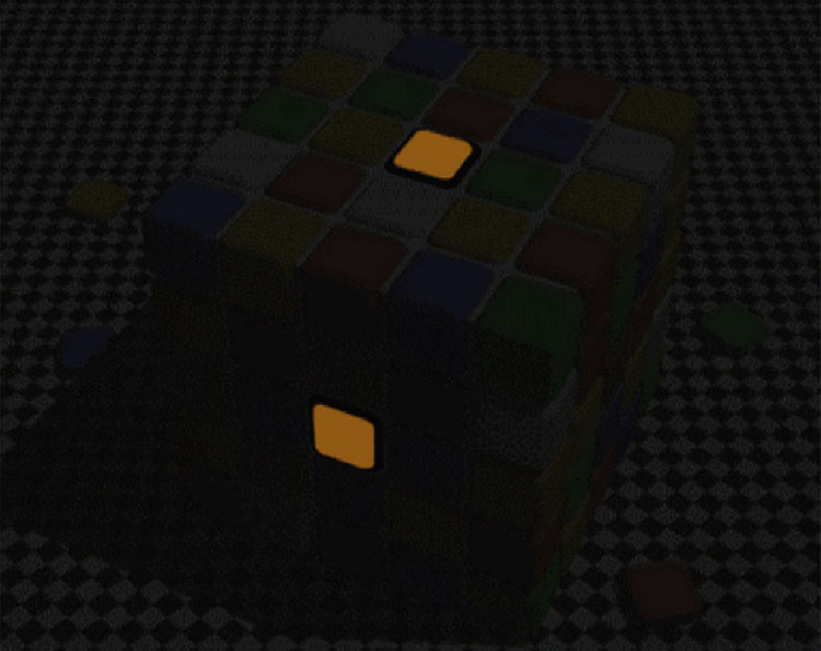 Los cuadrados ‘marrón’ y ‘naranja’ en el centro de los lados más visibles de éste cubo son en realidad del mismo color.