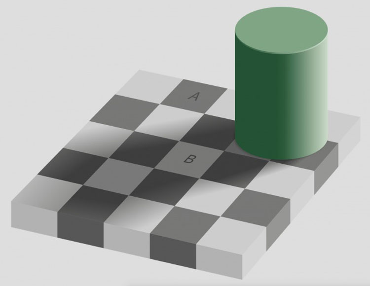 Fíjense bien en el tablero de ajedrez. ¿De qué color son los cuadrados “A” y “B“? El cuadrado “A” parece negro y el “B» parece blanco, ¿no? Averigüe si usted tiene razón o no a continuación…