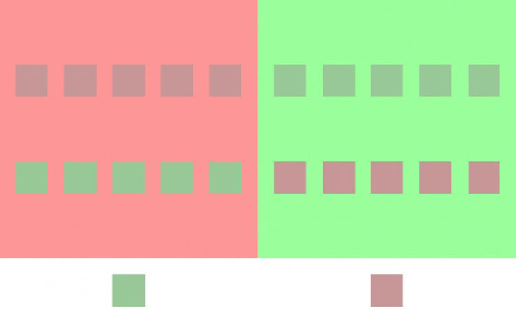 ¿Ves un tablero de ajedrez con cuadros blancos y negros? Las mitades grises de los cuadrados blancos y negros son en realidad del mismo color. El color gris puede ser percibido como negro o blanco, dependiendo del color que haya al lado de él.