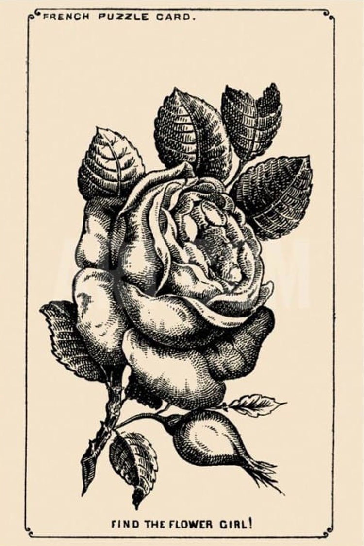 ¿Que tal este? Hay una cara de una niña escondida en algún lugar de esta hermosa rosa. ¿Puede usted encontrarla? (Pista: ¡mira al revés!)