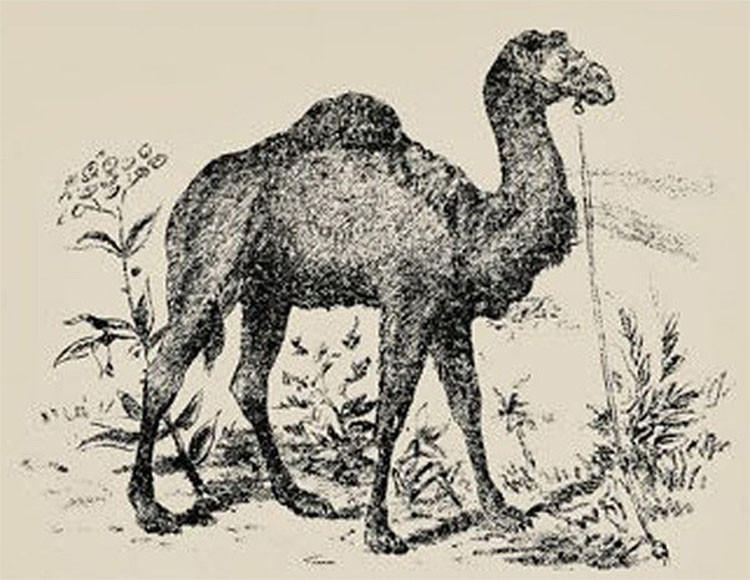Vamos a probar con otra. Al igual que la imagen del oso, esta imagen de un camello también contiene el retrato de su jinete. Pero no está en su joroba …