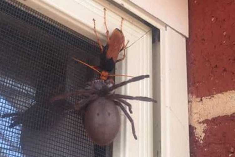 11. Una avispa araña usando una araña para incubar sus huevos.
