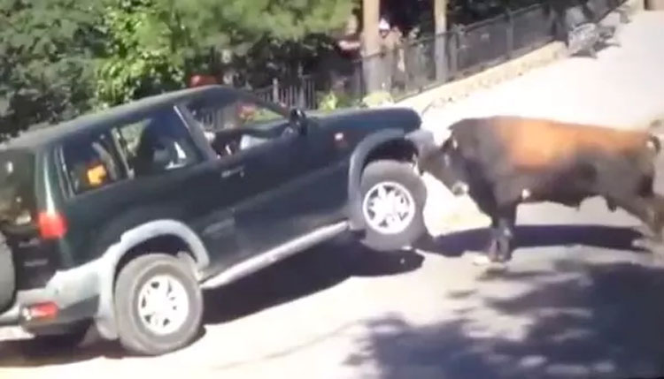 4. Vehículo contra Toro. Creo que el toro está ganando.