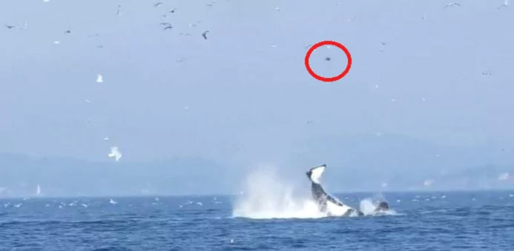 9. ¿Ves esa cosa en el círculo? Sí, eso es una foca lanzada al aire por la orca.