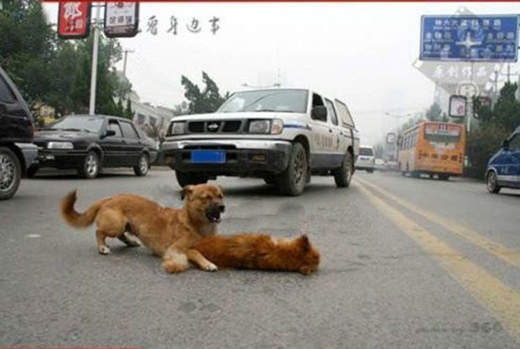 Esta perra fue obligada por su dueño para que llevara a sus 3 crías por la calle para venderlas. ¿Cómo puede no importale a su dueño el fuerte amor que existe entre ésta perra y sus crías?