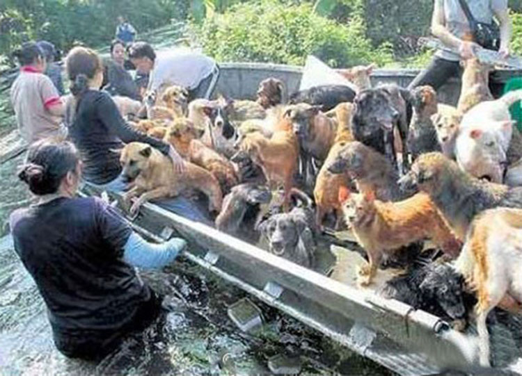 Durante una terrible inundación en Tailandia, las organizaciones de derechos de los animales hicieron todo lo posible para transportar a los perros a un lugar seguro.
