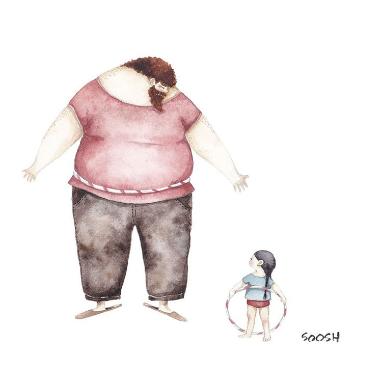 Una artista ucraniana de 37 años de edad, conocida como Soosh, ha creado recientemente algunos ejemplos conmovedores de la unión entre un padre y su hija, y lo publicó en su cuenta de Instagram. Por desgracia, su padre no estuvo involucrado en su vida cuando era niña. Por eso quiere estar segura de que su hijo de 9 años de edad, no sigue esos pasos.