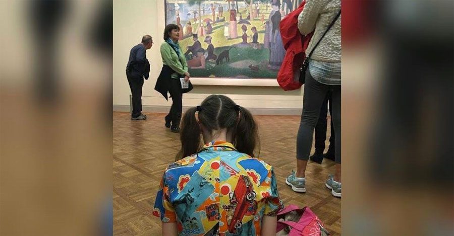 En la imagen superior, Jane había estado trabajando copiando fielmente una importante obra de arte del puntillismo de Georges Seurat, Tarde de domingo en la isla de la Grande Jatte, durante aproximadamente dos horas y media.