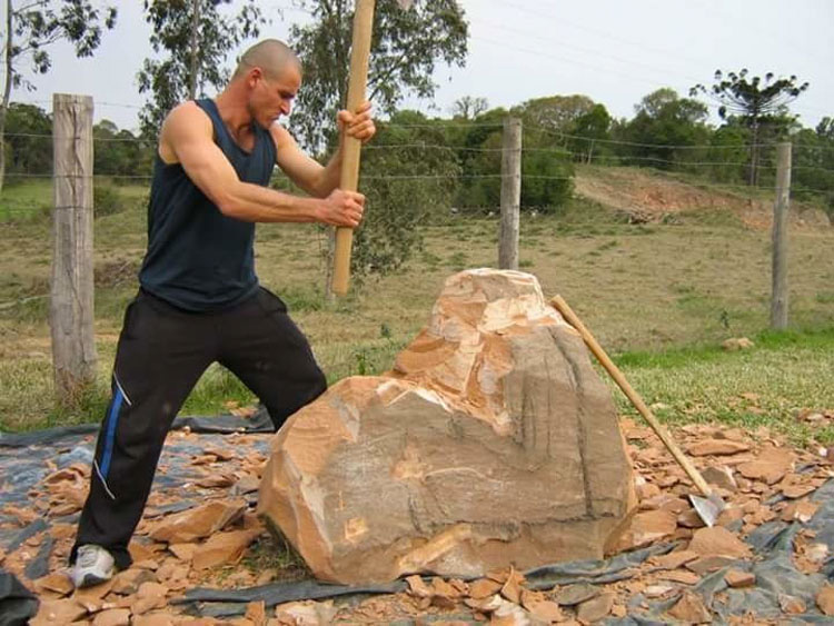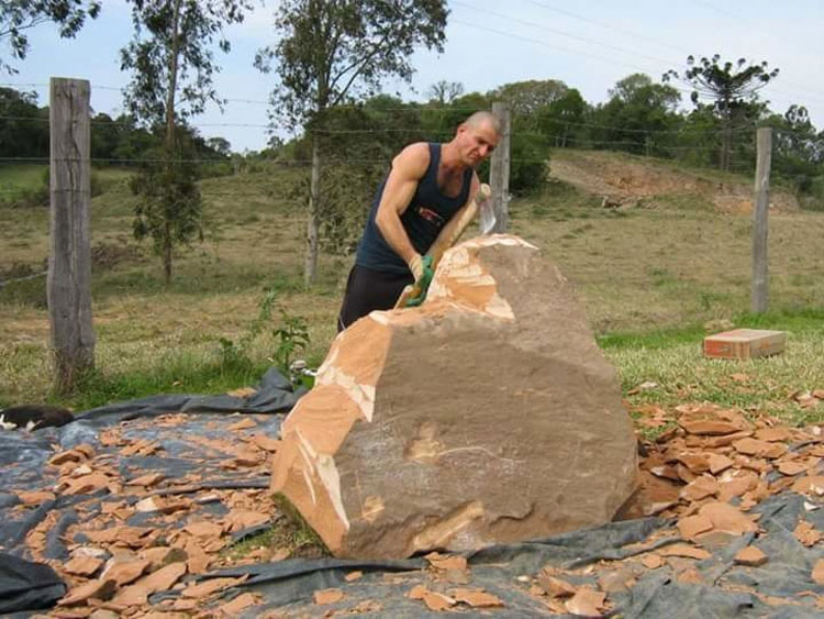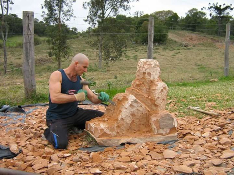 A medida que la roca comienza a tomar forma, Rogério comienza a cincelar los detalles más pequeños.
