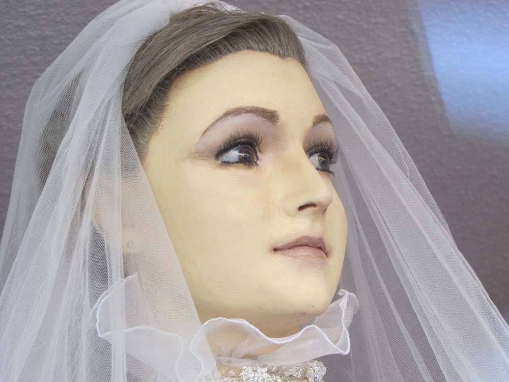 Mirando tras el cristal del escaparate de una pequeña tienda de vestidos de novias en Chihuahua, México, se encuentra una figura alta y esbelta, vestida también con un traje de novia. Durante casi noventa años, este maniquí desconcertantemente realista de la tienda de novias La Popular, ha seducido a visitantes de todas las partes del mundo. La pálida piel del maniquí, sus manos venosas, las arrugas en sus palmas, y sus uñas desgastadas hacen que muchas personas estén más que convencidas de que La Pascualita, como se la conoce popularmente, no es en realidad un muñeco, sino un cadáver embalsamado en perfecto estado de conservación.