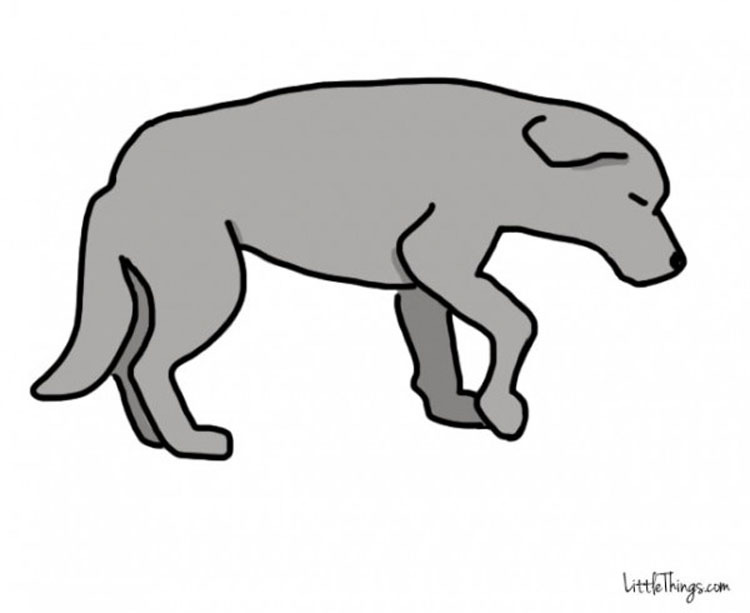 Esta posición puede ser un poco preocupante dependiendo del chucho. Es una situación de subordinación que hacen cuando están cerca de un perro de rango superior. Es la forma canina de decir: «Guau, amigo. Eres mejor que yo, así que haz lo que quieras«.