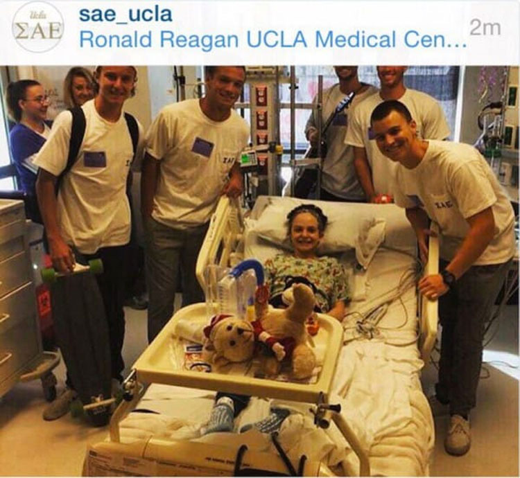 Lexi Brown, de 12 años, tiene cáncer, y recientemente pasó un tiempo en el Hospital Infantil Mattel de UCLA en California. La habitación del hospital recibió a una de las casas de fraternidad de UCLA, después de que, para pasar el tiempo y divertirse un poco, Lexi y su madre pusieran un letrero en la ventana pidiendo una entrega de pizza, sin pensar que daría lugar a algo increíble.