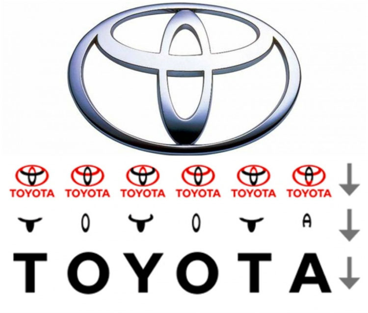 Muchas personas han comparado que el logotipo del productor de coches japonés Toyota con la imagen de un cowboy que lleva el típico sombrero. Pero, en realidad, representa una imagen estilizada del ojo de una aguja con un hilo que ha pasado a través de él. Esta es una pista del pasado de la compañía, que producía máquinas de tejer y coser. Sin embargo, las partes individuales del logotipo también deletrean las letras del nombre de la compañía.