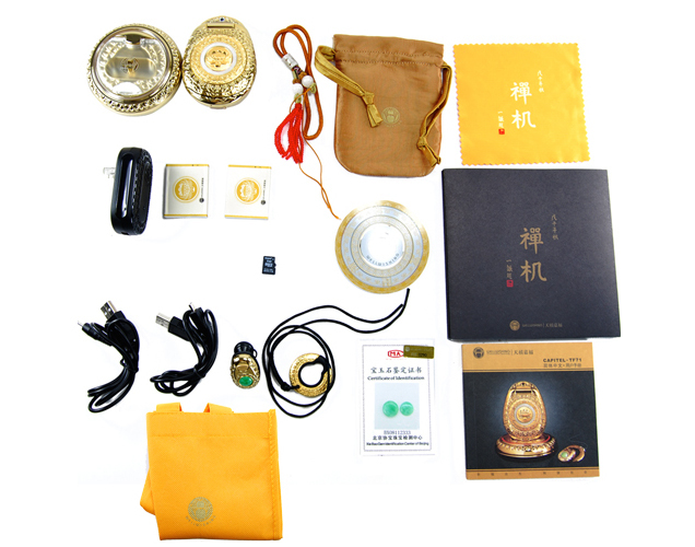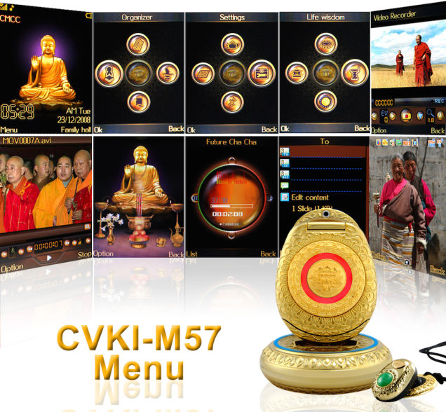 El Buda de Oro (Golden Buddha), pintado a mano con pintura de oro de 24 quilates y con una verdadera pieza de jade incrustada. Algunos de estos móviles fueron vendidos hace cinco años en China por alrededor de 1.500€.