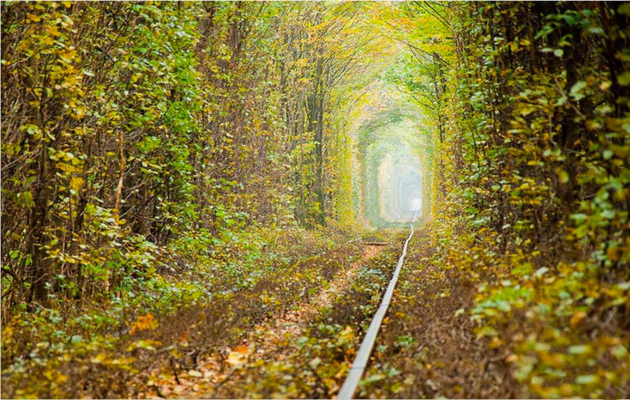 En Kleven, Ucrania, reside una pintoresca línea de ferrocarril conocida como El túnel del amor. Las vías estaban tradicionalmente destinadas para que un tren privado llevase madera a una fábrica local, pero las parejas que buscan una experiencia de «cuento de hadas» han dado al recorrido un propósito adicional. De 1,8 kilómetros de largo y con tres trayectos diarios, el Túnel del Amor se ha convertido en un destino imprescindible para parejas que buscan un momento romántico.