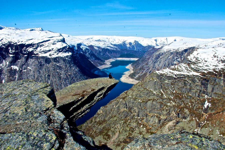Trolltunga es una formación rocosa horizontal que cuelga en Skjeggedal, Noruega. La traducción sería «La lengua del Troll». Trolltunga está situada a 700 metros sobre el lago noruego conocido como Ringedalsvatnet.