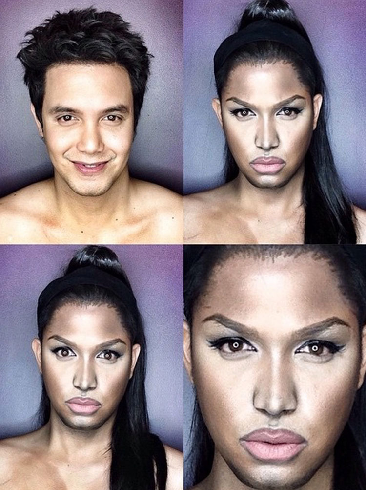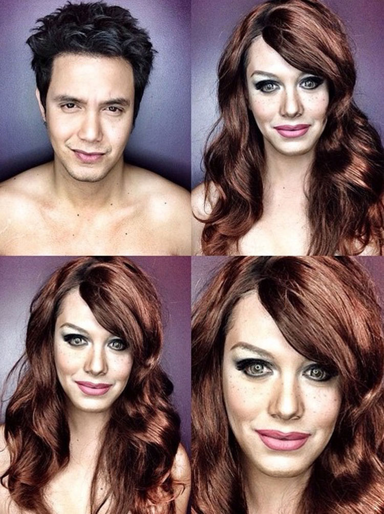 Sin embargo, para Paolo Ballesteros, el maquillaje no es un trabajo. Para él es un reto glorioso destinado a ser conquistado. Ballesteros es un actor filipino, modelo y artista del maquillaje de 32 años, que afirma que puede transformarse en cualquier celebridad o famoso con la ayuda de maquillaje y pelucas. Algunas de sus imágenes tratando de imitar a famosos pueden ser cuestionables, pero en su mayoría, lo que Ballesteros puede hacer con algo de maquillaje es sencillamente impresionante.