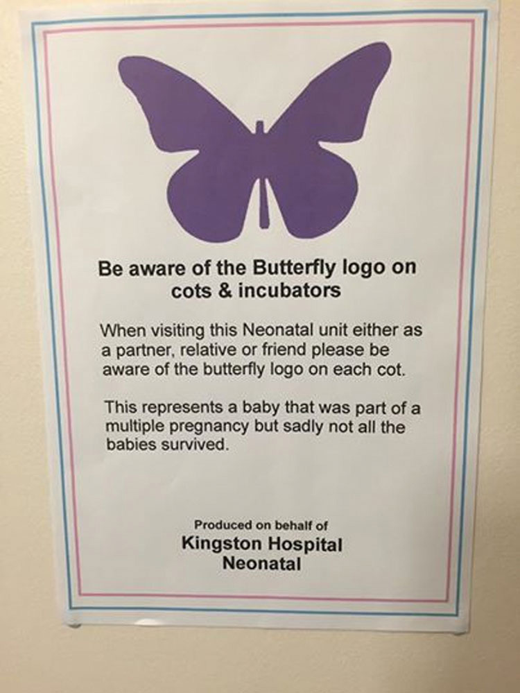 «Ninguno de los otros padres sabía lo que había sucedido, ni sabían nada de Skye. El comentario era completamente inocente pero no tenía la menor gracia … Ellos no podían saber que hubo un momento en que tenía dos bebés. Pero el comentario casi me rompe. Salí de la sala en lágrimas. No tenía el corazón para decirle lo que había pasado. Una simple pegatina habría evitado toda esta situación «.