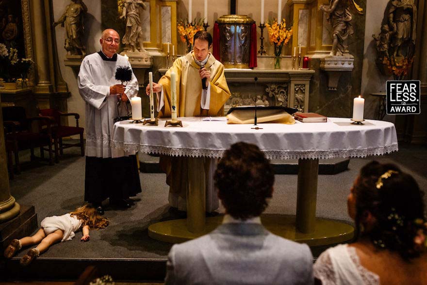 Fearless Awards es un concurso colaborativo que presenta cada dos meses una colección cuidadosamente escogida de fotos de boda de primera clase. Menos del 3% de las cuales son seleccionadas por un grupo de jueces experimentados y aclamados que buscan trabajos que no teman sobrepasar los límites de la fotografía profesional de bodas. Bored Panda ha recopilado una lista de algunos de los mejores premios Fearless Awards que se han otorgado hasta ahora en 2017, y el resultado es impresionante. Desde una niña pequeña que se desmayó en el altar hasta un perro que se hace caca en el mismo pasillo de boda, estas imágenes capturan perfectamente los pequeños momentos que hacen memorable una ceremonia. ¡Desplázate hacia abajo para ver las impresionantes fotos y elege tus favoritas!
