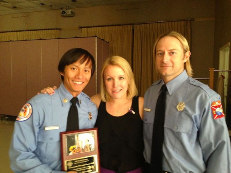 Un día, en medio de su largo camino hacia la recuperación, Melissa asistió a un evento de la iglesia y, finalmente, se reunió con Cameron (en la foto a la derecha) – uno de los bomberos-paramédicos que salvaron su vida ese trágico día. Los dos conectaron al instante, y las chispas saltaron…