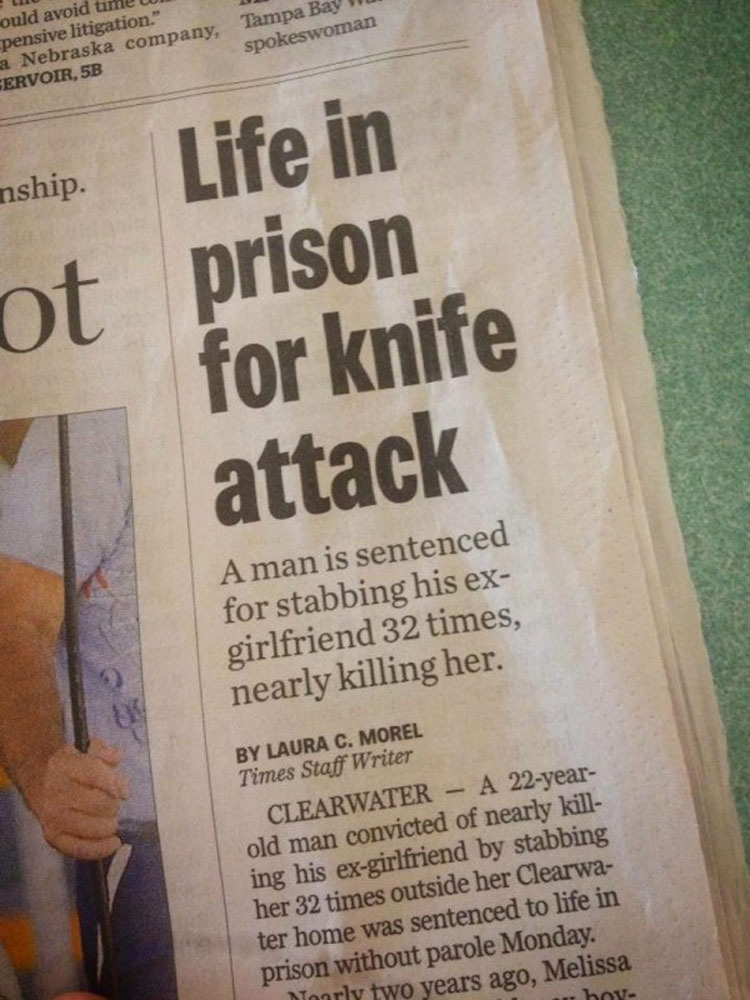 En 2012, Melissa Dohme tenía 20 años cuando fue atacada por su ex novio en Clearwater, Florida (EEUU). La apuñaló 32 veces y la dejó por muerta – sin embargo, milagrosamente, sobrevivió.