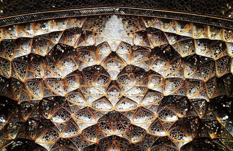 Esta pieza llamativa de arquitectura se puede encontrar en Shiraz, Irán, en la mezquita Shahcheragh.