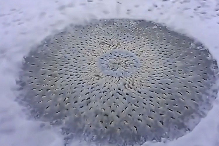 Este video ha dejado a la gente completamente desconcertada, fue grabado por dos amigos en algún lugar de un lago congelado en Utah (EEUU). Al principio, parece mostrar algún tipo de «círculo de cosecha» impreso en el hielo. Pero lo que encuentran cuando están más cerca hace que te quedes completamente desconcertado.
