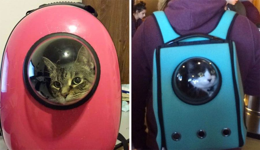 Hemos seguido al portador de la mochila hasta su fuente y hemos llegado a una compañía llamada U-Pet, que cuenta con una serie de productos, todos ellos con el mismo diseño de la ventana de burbuja, y por supuesto, con aberturas para permitir un montón de aire fresco.