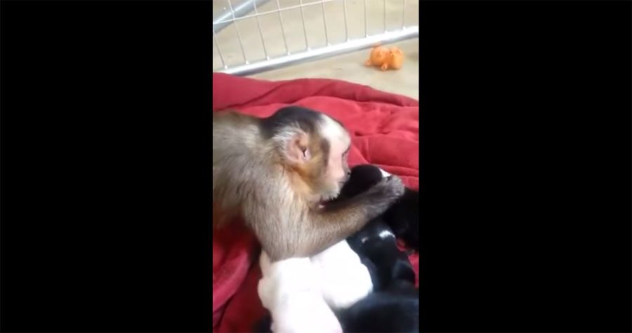 Esto es lo que ocurre cuando un mono se reune con unos perritos recién nacidos por primera vez