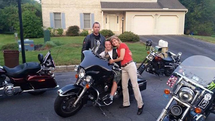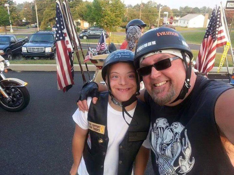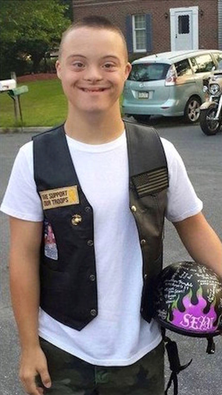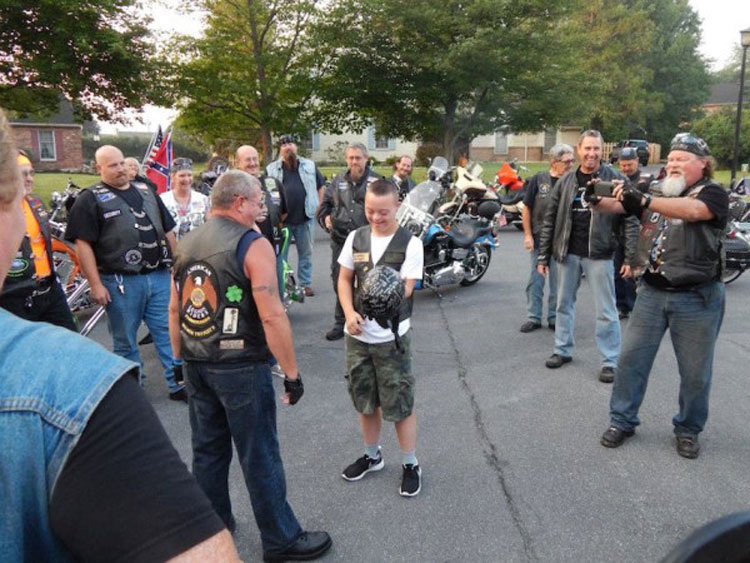 Los moteros incluso dieron a Sean su propio casco personalizado.