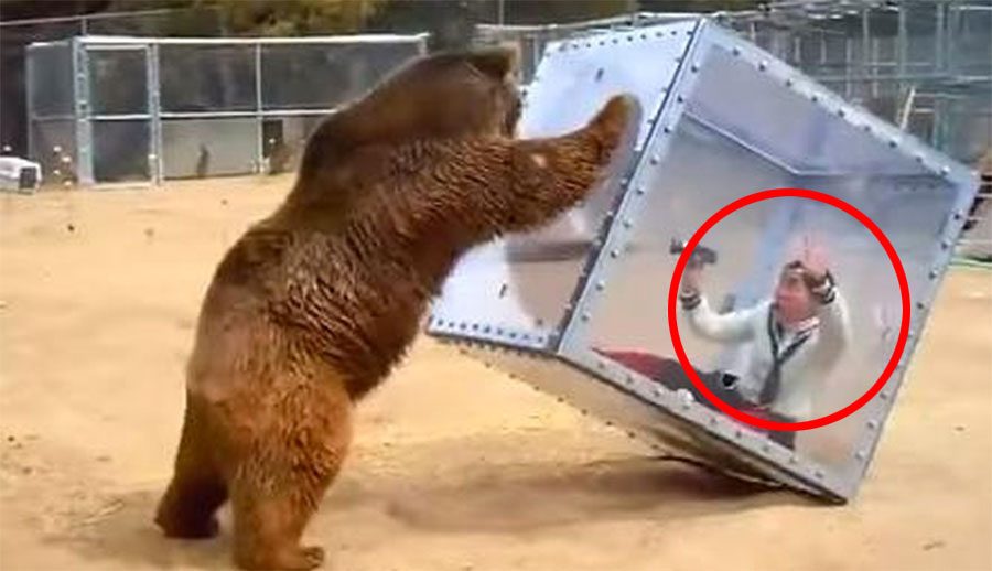 Esta noticia nos llega desde el reino de lo ridículo: el video de un oso grizzly atacando a un cubo transparente con una mujer dentro de él está haciéndose viral en Internet.