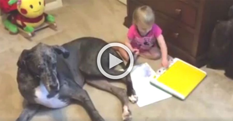 Sentada tranquilamente en el suelo junto al perro gigante, esta dulce pequeña tiene su kit de pintura cerca. Sólo hay un problema: ¡no tiene pincel para pintar! Y es entonces cuando aparece la imaginación de la pequeña en acción y hace esto…
