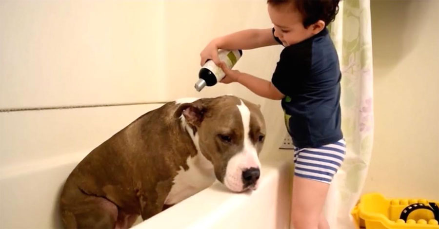 Este niño quiere mucho a su ‘hermano’ peludo, sabe en su corazón que tiene que hacerlo pasar por la cosa que más odia, y mamá estaba allí para capturar toda la escena. El niño hizo un gran trabajo en la limpieza de su mejor amigo, a pesar de que la expresión de su rostro nos dice a todos cómo realmente se siente…