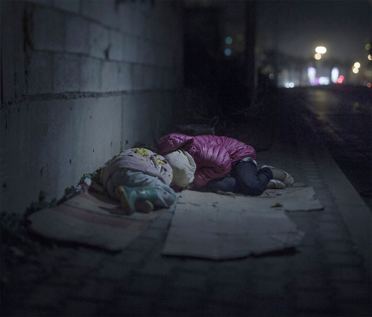 Ralia, de siete años, y Rahaf, de trece años, viven en las calles de Beirut. Son de Damasco, donde una granada mató a su madre y a su hermano. Junto con su padre, llevan un año durmiendo al aire libre. Se acurrucan juntos en sus cajas de cartón. Rahaf dice que tiene miedo de los «chicos malos», y entonces Ralia empieza a llorar.