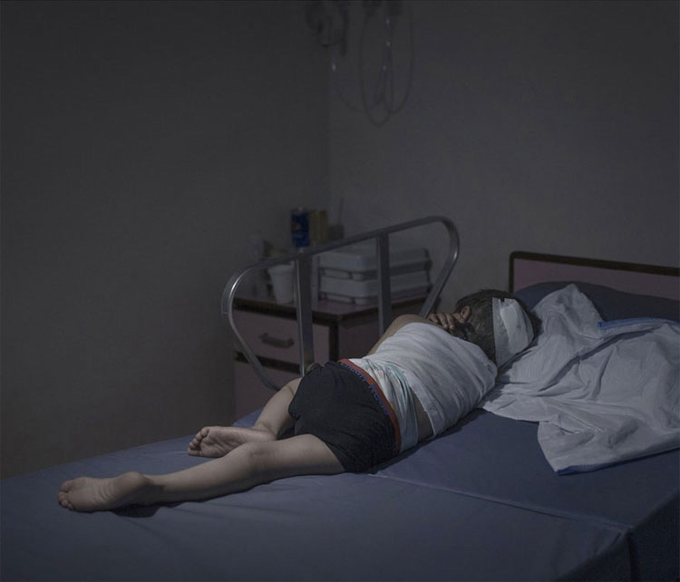 Incluso el sueño no es una zona segura; es el lugar donde se repite el terror. Ahmad estaba en casa cuando la bomba impactó en la casa de su familia en Idlib. La metralla le golpeó en la cabeza, pero sobrevivió. Su hermano menor, no lo hizo. La familia había vivido con la guerra durante varios años, pero ahora sin un hogar, no tuvieron otra opción. Se vieron obligados a huir. Ahora Ahmad es uno más entre los miles de refugiados tirados en el asfalto a lo largo de la carretera que conduce a la frontera cerrada de Hungría. Este es el día 16 desde su partida. La familia ha dormido en paradas de autobús, en la carretera, y en el bosque, explica el padre de Ahmad.