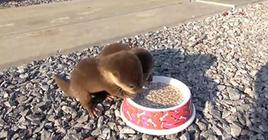 Pone un plato de comida frente a dos pequeñas y traviesas nutrias. Ahora mira lo que hacen…